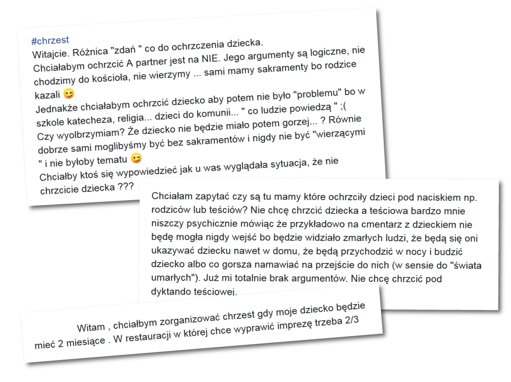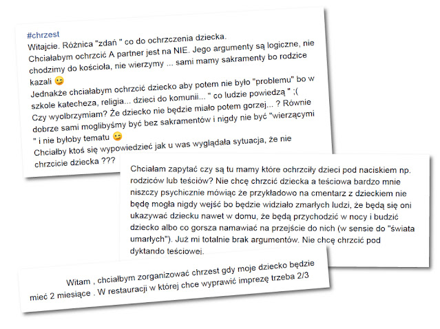 Jednak nie ma co się dziwić, że takie pytania się pojawiają. Chrzciny stały się swego rodzaju “tradycją”, a nie wyznaniem w jakikolwiek sposób swojej wiary. Wiele osób uważa, że gdy zostanie ochrzczonym przez wodę (H2O) zostaje zbawionym, staje się chrześcijaninem, a grzech pierworodny zostaje zmyty. Tak jednak nie jest. Chrzest dzieci jest praktykowany przede wszystkim w takich religiach jak; -Katolicyzm -Prawosławie -Anglikanie -Luterianie -Metodyści -Kalwiniści (chodź są wyjątki)
