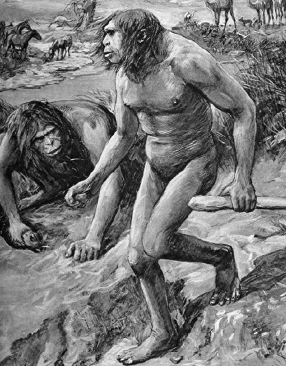 Pierwotnie nazywany „Pithecanthropus erectus”- oznacza wyprostowaną małpę, obecnie znany jako „Homo erectus”. Ewolucjoniści oszacowali wiek tego okazu na około 500 tysięcy lat. Jego wygląd został odtworzony na podstawie kilku kawałków kości znalezionych w 1891r w Indonezji na Jawie.